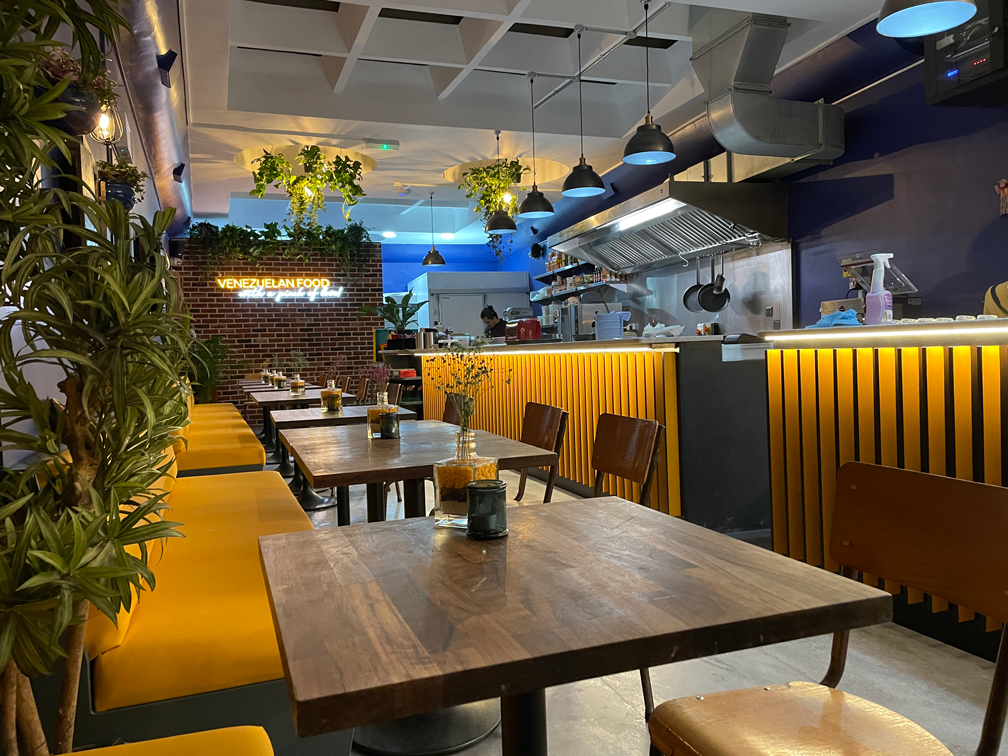 Ideally located in upcoming Haggerston, Arepa & Co. is the natural sequel and stable response to a long established weekend stall in Camden Market. The new venue overlooks Regents’ Canal with a southern aspect thus thoroughly enjoys a grand view and abundant light. Keeping in mind its location, the proposal places the sitting area facing the waterway, and divides the space into a lounge and a dining area. The rear portion of the building is designed to host the bar and the kitchen, which physically opens over it.