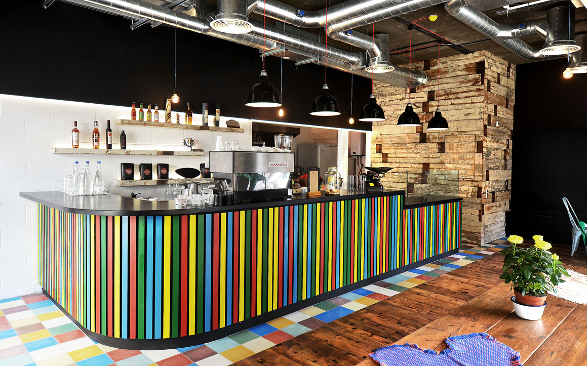 The décor is created from honest, reclaimed materials able to mirror the Caribbean magnetic character of the establishment blending it in seamlessly with the popular but funky identity of Haggerston.