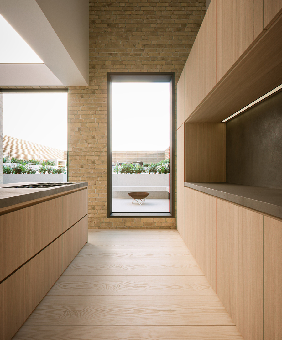 In addition a high quality rear extension was designed that utilises the difference in ground levels of the plot between front and rear to enable a two storey extension without increasing the height of the existing building. This proposal showcases the existing rear façade, and the arched fenestration system with a light and transparent design.